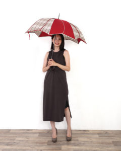 ですが、モデルが日傘を持った、実際の使用感を見せる写真は必ず欲しいというクライアント様の強い要望により撮影をさせていただきました。モデルが実際に日常で使う姿を撮る事で、サイズ感や使用感がお客様によりわかりやすく説明でき、商品を手にもった際のイメージがよりわかりやすくなります。